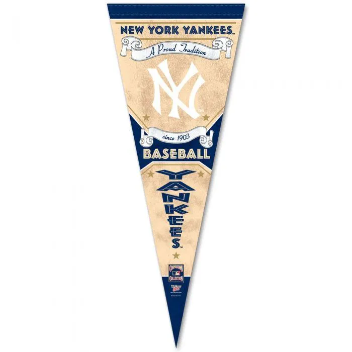 Pennants are a timeless icon across all sports. The Premium Quality Pennant is a throwback to wool pennants. Our soft felt pennant measures 12″ x 30″, printed in full color. Thanks to our roll and go technology, the Premium Quality Pennant will not wrinkle or crease like our classic pennants. Made in America. Officially licensed