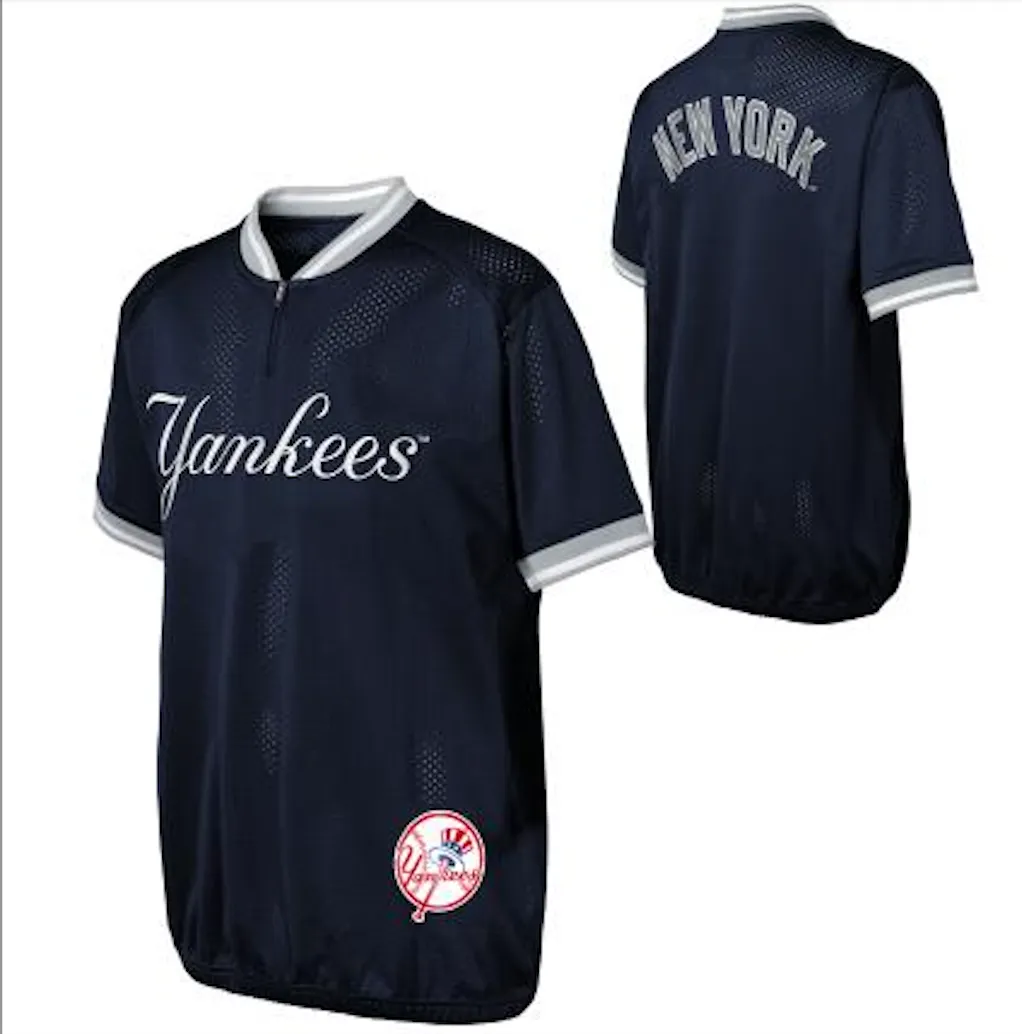NEW YORK YANKEES YOUTH MESH SLIDE RUN SS SOLID BASEBALL CO and crew neckline & Banded bottom