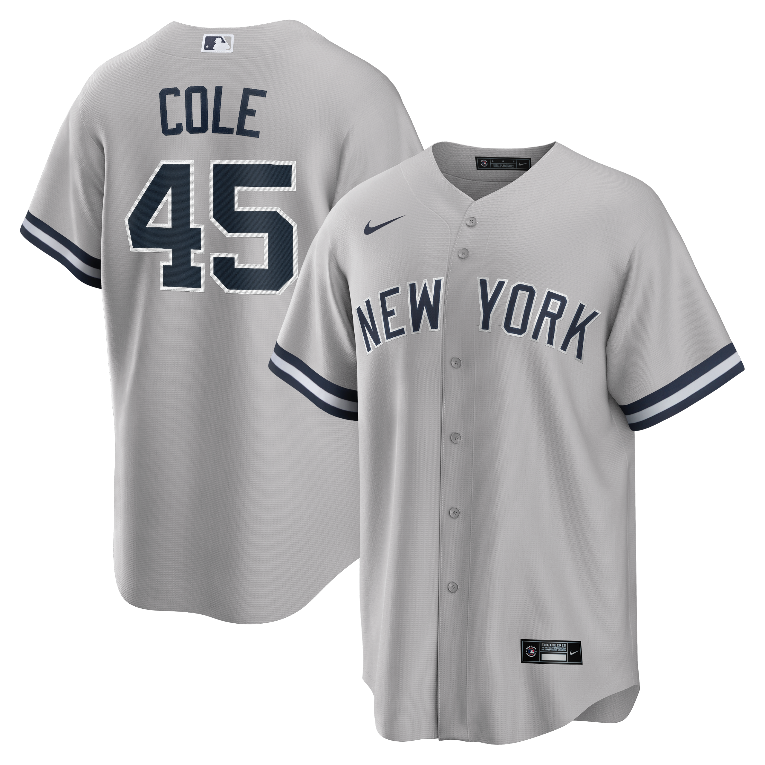 The NY Yankees Gray Cole Nike Official Replica Jersey features authentic team detailing and a lightweight, breathable fabric for all-day comfort. Perfect for fans, it is designed to replicate the on-field look of your favorite player.