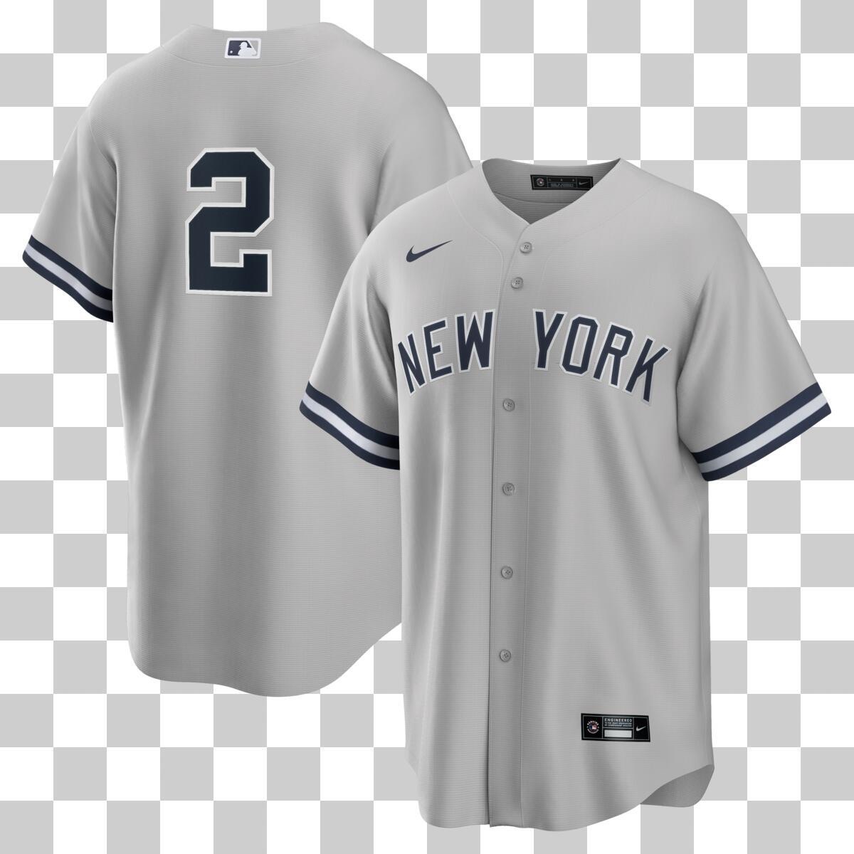 The NY Yankees Gray Jeter #2 Nike Official Replica Jersey features an authentic replica design, showcasing Derek Jeter's iconic number and team colors. Crafted with premium materials, this jersey is perfect for fans and collectors alike