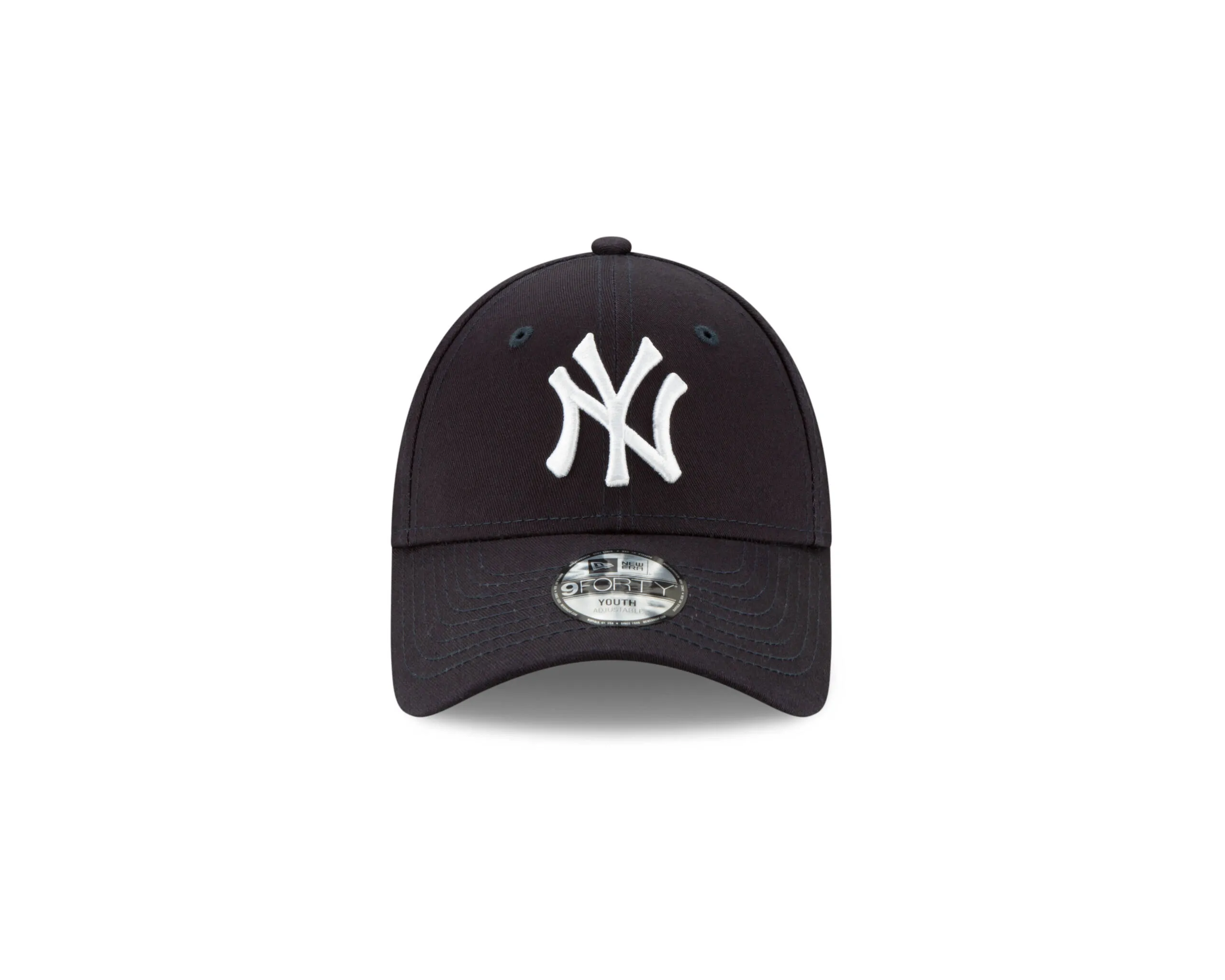 features a team color fabrication with an embroidered Yankees logo at the front panels